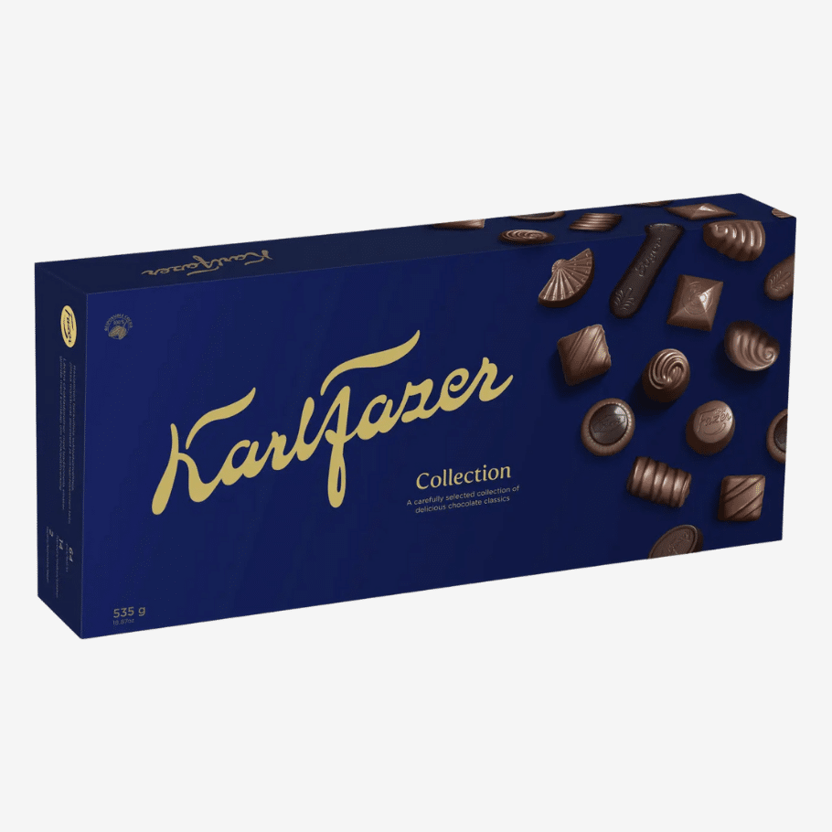 Karl Fazer Collection -konvehtirasia on kunnianosoitus Fazerin suklaataiteen huipulle – valikoima, joka yhdistää yli vuosisadan suklaaperinteen ja nykypäivän makutrendit. Rasia sisältää 64 huolella valittua konvehtia, jotka edustavat Fazerin rakastetuimpia klassikoita, herkullisia uutuuksia ja suurimpia suosikkeja. Yhteensä 14 erilaista konvehtia tarjoavat monipuolisen ja ylellisen makumatkan, joka sopii täydellisesti juhlahetkiin, lahjaksi tai jaettavaksi rakkaiden kanssa.