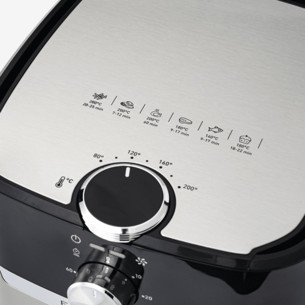 Laitteen lämpötila on säädettävissä alueella 80 – 200 °C, joten voit valmistaa monipuolisia ruokia kuten rapeita ranskalaisia, mehevää kanaa, täydellistä lihaa, herkullisia mereneläviä, halloumia tai vihanneksia. Lämpö jakautuu tasaisesti, minkä ansiosta kypsennys onnistuu aina.