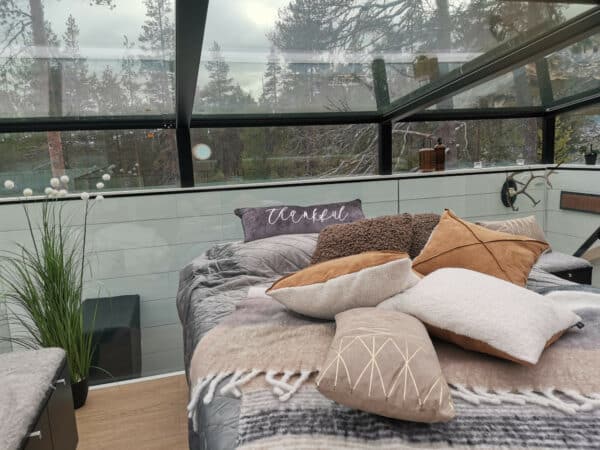 Anna lahjaksi romanttinen yöpyminen 2022 valmistuneessa lasikattoisessa lämpimässä iglumökissä Levin Utsuvaaran upeissa maisemissa!